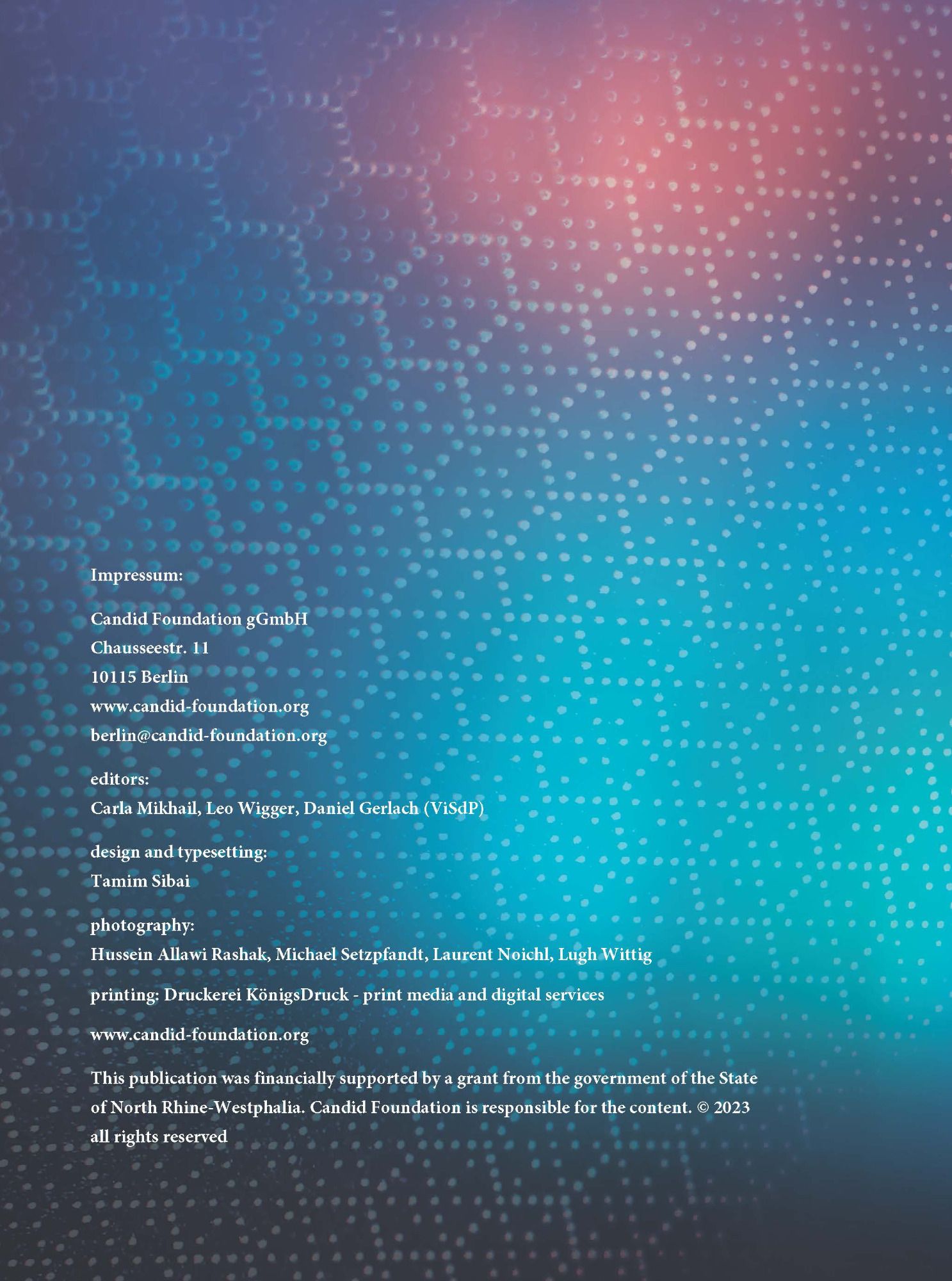 The MENA DSS was conducted with partners like Digital Arabia Network, the Einstein Centre Digital Future, the Centre for Advanced Internet Studies (CAIS), Circular Valley, FernUniversity in Hagen, Barenboim-Said Akademie, Atingi, and many others. The initiative was kindly funded by the government of the State of North Rhine-Westphalia and supported by the German Federal Foreign Office.